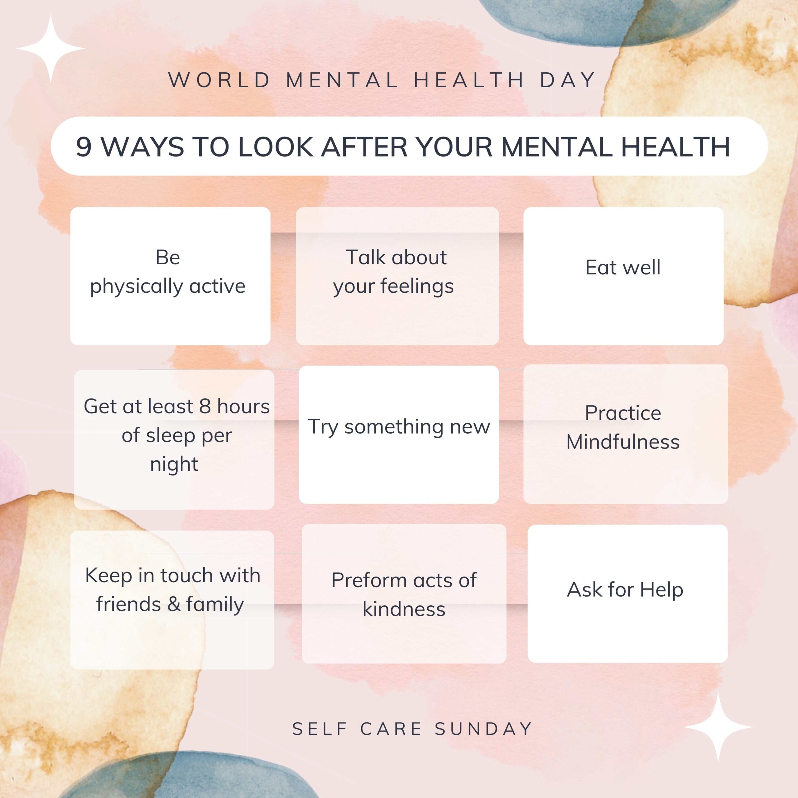 - Create a daily routine that includes activities promoting mental well-being, such as exercise, meditation, journaling, or engaging in hobbies.