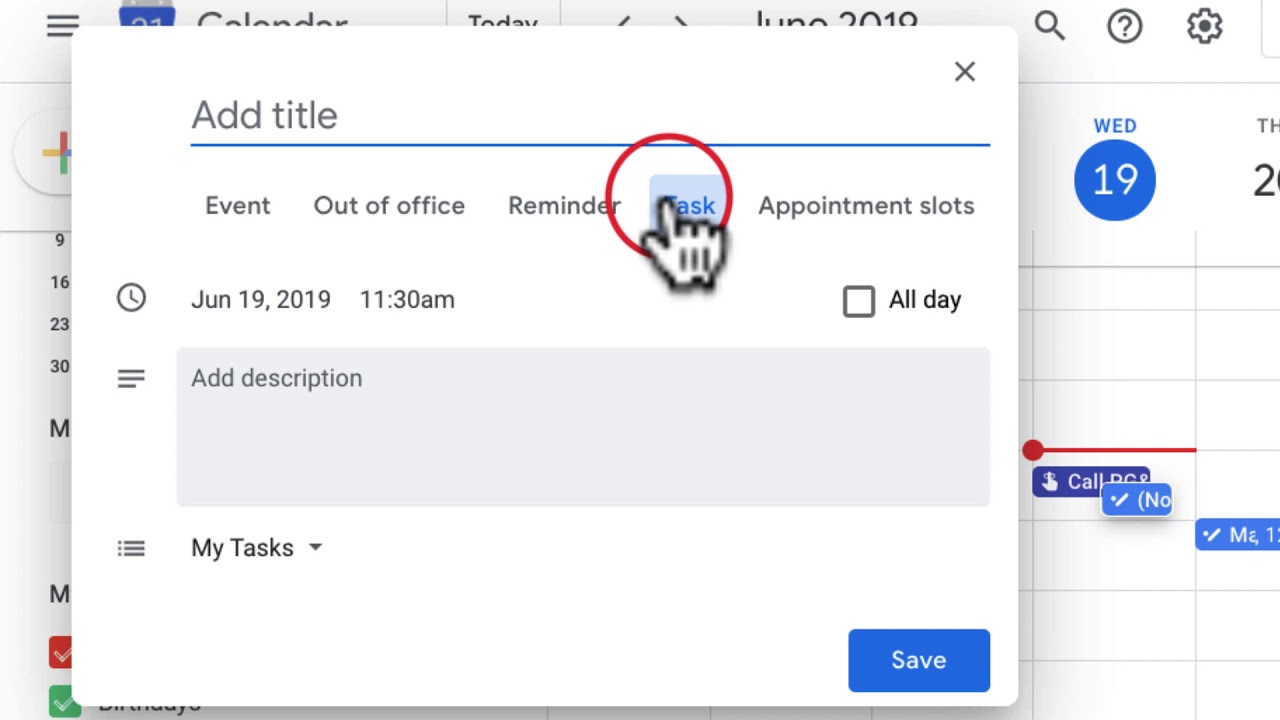 Defining Tasks & Events in Google Calendar